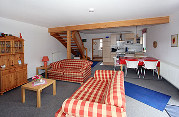 Die Ferienwohnungen 3 + 5 sind 78 m² groß und identisch geschnitten. Die beiden Wohnungen sind für 2 bis 4 Personen optimal geeignet und erstreckt sich über Erd- & Obergeschoss. Die Wohnung ist gemütlich eingerichtet und mit allem Komfort ausgestattet.
