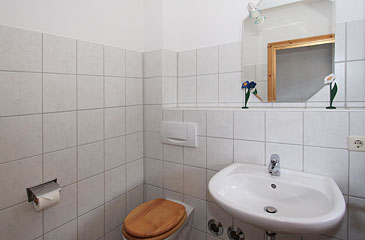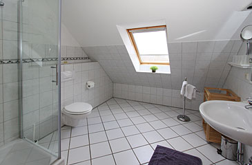 Geräumiges Duschbad mit Fön und Handtuchheizkörper sowie ein extra Gäste-WC |