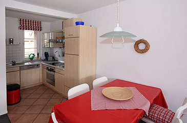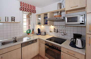 Komplett ausgestattete, offene Küche mit Kühlschrank, Gefrierfach, Herd mit Cerankochfeld und Backofen, Dunstabzugshaube, Mikrowelle, Geschirrspülmaschine, Senseo-Kaffeepadautomat, Kaffeemaschine, Toaster, Wasserkocher sowie ausreichend Koch- & Essgeschirr |