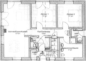 einen separaten Eingang und verfügen über einen großen Wohn- & Essraum mit kleiner Küche, zwei Schlafzimmer und ein geräumiges Duschbad. Außerdem gehört eine große Sonnenterrasse zur Wohnung.