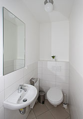 Duschbad mit Waschbecken, Fön und Handtuchheizkörper sowie ein extra Gäste-WC |